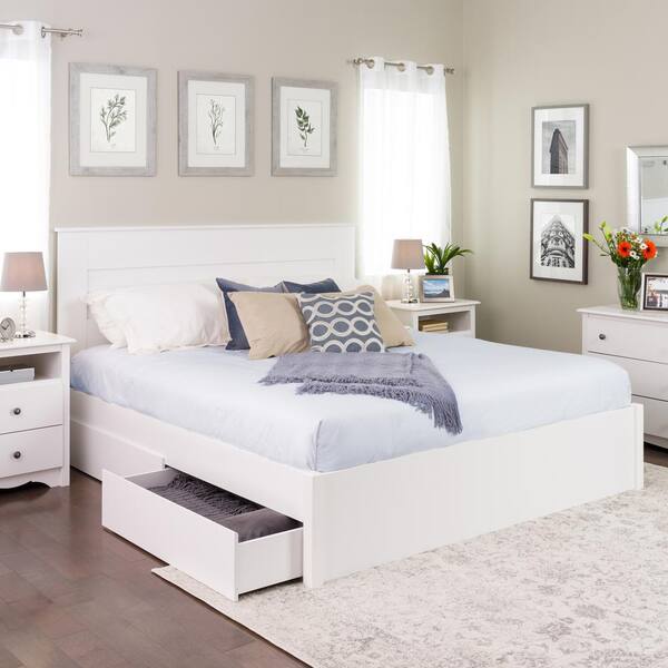 Equipped with 2 drawers on each side, this king platform bed offers a vast and convenient storage option in the bedroom. Plus, four drawers give you plenty of storage space without drawing too much attention. These handy hardwood storage drawers slide under your platform bed frame on steel supported plastic rollers, to store bedding or board games, whatever you need! First day, i had to call customer service as i was stuck and confused in which part to use. Home design ideas > beds > white platform bed with storage drawers. Hello, you may use your own mattress and box springs with the platform bed with drawer storage. Attach the included surface mount turbo charger and keep all your electronics charged. We hope this information is helpful to you! Choose from contactless same day delivery, drive up and more. Beveled hardwood platform bed drawers for our night and day platform beds. The platform bed has got upholstered white faux leather. The four drawers under the bed provide ample storage space for lighter items such as linens, clothing and shoes. The only problem was the drawer was slightly smaller than frame but my husband made adjustments to make it fit.